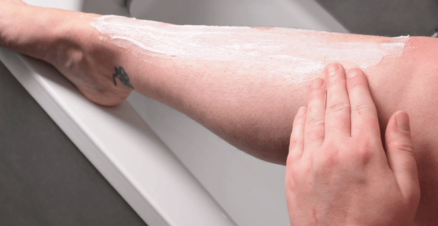 1. Vorbereiten – Trage (je nach Körperbereich) die Enthaarungscreme oder den Haarentfernungsschaum gleichmäßig auf die gewünschte Hautpartie auf. Die Wirkstoffe entfernen die Haare sanft, ohne die Haut durch Klingen zu reizen – die Hauptursache für Hautirritationen wie Rasurbrand oder -pickel.