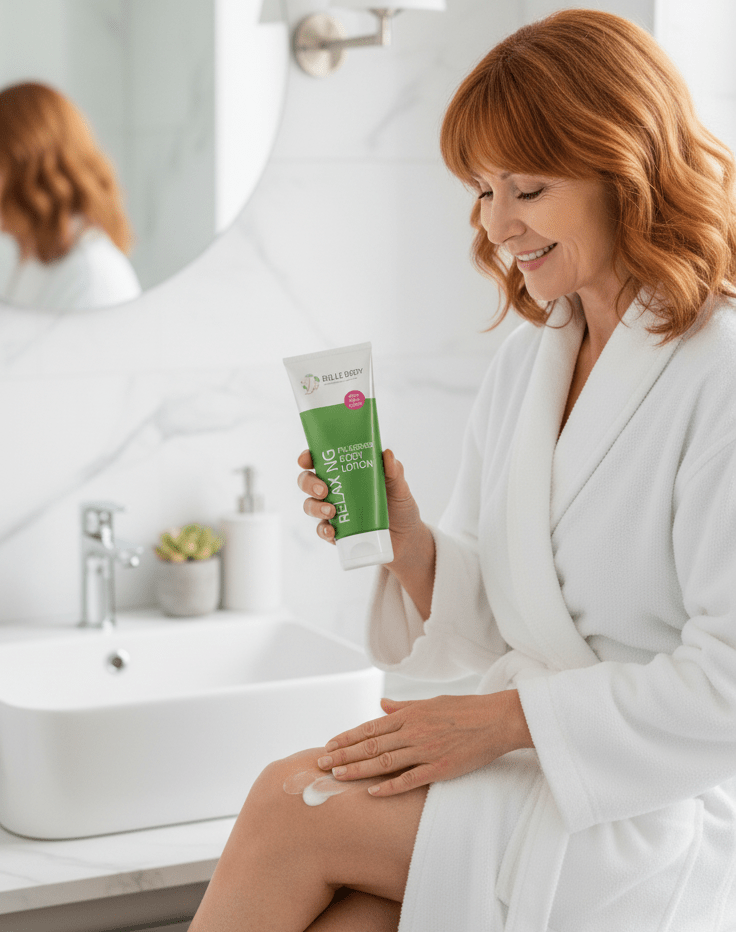Die Belle Body Body Lotion ist die ideale Pflege nach jeder Haarentfernung. Ihre feuchtigkeitsspendende Formel beruhigt die Haut sofort, versorgt sie intensiv mit Nährstoffen und beugt dadurch effektiv Rasurpickeln und Hautirritationen vor. Dank der leichten Textur zieht die Lotion schnell ein, ohne einen fettigen Film zu hinterlassen, und hinterlässt ein seidiges, entspanntes Hautgefühl. Pflanzliche Wirkstoffe unterstützen die Regeneration der Haut, stärken ihre natürliche Schutzbarriere und sorgen für langanhaltende Geschmeidigkeit. Regelmäßig angewendet, hilft die Body Lotion nicht nur dabei, Irritationen zu vermeiden, sondern macht deine Haut sichtbar glatter und widerstandsfähiger – die perfekte Ergänzung zu deiner Haarentfernungsroutine.